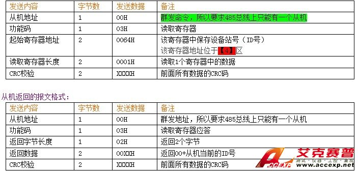 例如:485總線上只掛接了一個型號為420MA-IN4型的從機,該情況下可以對其下發(fā)讀取ID命令。