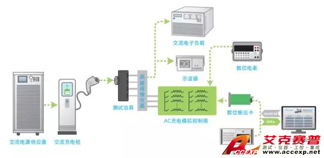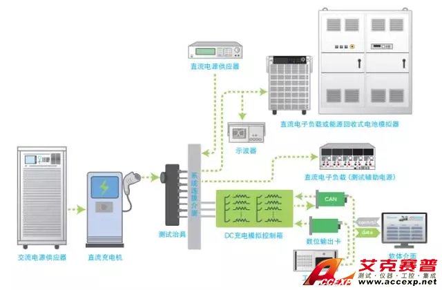 電動汽車傳導充電互通性測試規(guī)范等要求對產品進行測試,所以此系統不但提供了電氣特性測試,也進行通信協議測試,可以模擬實際充電樁在操作時,同時輸出功率與通信,可測試充電樁是否會在大功率傳輸過程中所產生的磁場而干擾到通信。并可模擬各信號線在充電過程中 Open/Short/CC1信號電壓變化時充電樁相應的保護動作及回應間已排查通訊隱患。