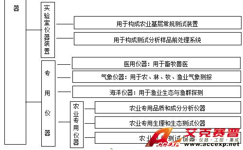 農業包括種植業、林業、畜牧業、漁業和農副產品加工業(國外多將農業與食品歸為一個領域)。與其他領域一樣,科學儀器和檢控儀器,作為信息技術的源頭,也必然是農業科技發展的“摧化劑”、農業現代化和可持續發展的“倍增器”。如今科學測試和檢控儀器已滲透到現代農業的各領域和環節(見附表1),既涉及動植物本體的性狀、生理、生態和環境因子及其產品品質的測試分析,也涉及產品在儲運、保鮮和加工中的檢控。過去有一種錯覺、多認為農業比較粗放,對儀器的技術要求不高、品種不多,其實農業各方面需分析測試和檢控的對象極廣泛,從動植物群體、個體到細胞、基因、分子,從有機到無機,從檢測生態環境到模擬甚至創造特定的生態環境,其對象多是生物體,而使用條件又比工業使用環境更惡劣的田間、現場。所以,在農口凡屬較深層次的科技項目和較大規模的精細農業生產,當今我國科學儀器的許多技術指標、性能、應用條件尚難滿足實際需求。但是,我國儀器儀表行業歷經波折和努力之后、還是取得了長足的發展。據我們對農業和食品業抽樣統計,按臺數計算、省級和地(市)級國產儀器占有率約占70%以上,而縣級部門幾乎都用國產儀器。現以農業幾個方面和我國已公布實施的農業和食品業的幾個標準為例,概述幾種通用的分析儀器在農業和食品業應用狀況和法定地位,提出農業現代化對科學儀器的新需求,以及振興我國科學儀器、研發農業專用儀器具體建議。