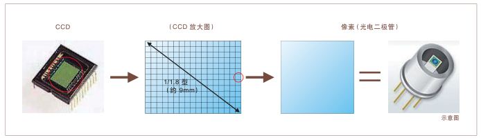 數(shù)碼相機(jī)的構(gòu)造與傳統(tǒng)的膠片式相機(jī)(模擬式)基本相同。所不同的是數(shù)碼相機(jī)中使用被稱為 CCD 的光電轉(zhuǎn)換元件代替膠片,圖像則作為數(shù)字信息采入。CCD 即相當(dāng)于模擬式相機(jī)的膠片,那么它又是如何將圖