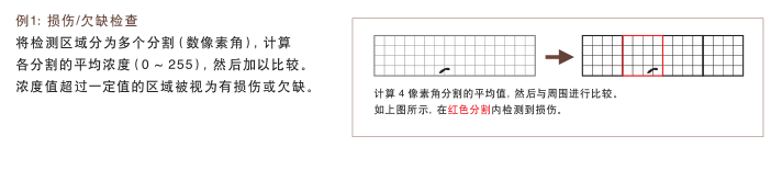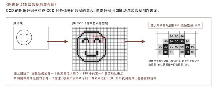 圖像處理器可以利用攝像元件 CCD 中各像素的 256 級濃度數(shù)據(jù),檢測面積(即像素?cái)?shù)量)、位置(即濃度變化點(diǎn))及損傷(濃度變化量)等。通過高像素化(增加信息量)及高速化(更利于生產(chǎn)線作業(yè)),可以使圖像處理器更好地應(yīng)用于各種生產(chǎn)活動(dòng)中