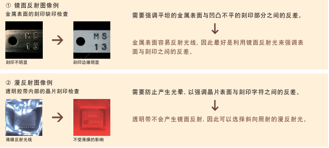 選擇照明的第一步是根據(jù)工件的形狀及檢查目的,確定鏡面反射、漫反射、透射等照明方式。下一步是選擇照明的尺寸及光線(xiàn)顏色,以確保所得到的圖像適于檢查目的。