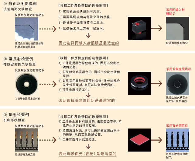 或棒型照明,透射可選擇面照明或棒型照明。其中環(huán)形照明及棒型照明的設(shè)置距離更加靈活,因此應(yīng)用范圍更廣。