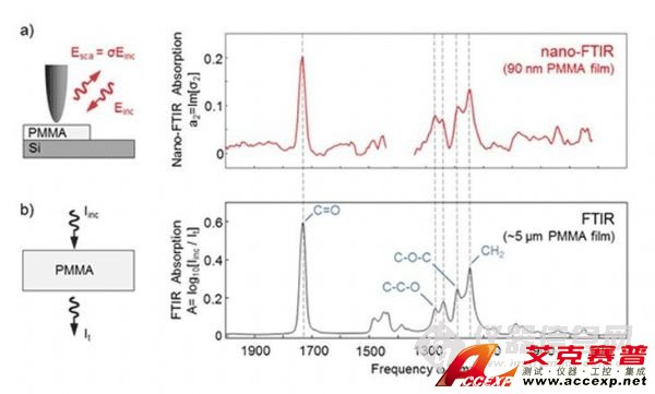 圖4 Nano-FTIR所獲得的光譜圖與傳統(tǒng)紅外光譜圖的比較