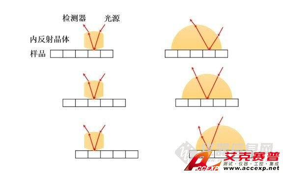 圖2 ATR紅外光譜成像的兩種測量方式。左:ATR單點(diǎn)物鏡;右:ATR成像附件。