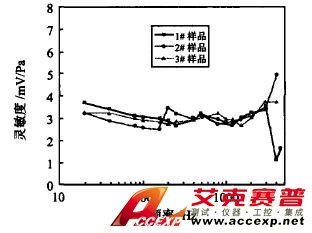 (1)采用均勻聲腔硅油介質中傳播的聲波作為壓力源,用比較法比較標準傳感器和被測傳感器的輸出,可有效地測量壓電式微壓傳感器的靈敏度及頻率響應特性。3只傳感器的測量靈敏度分別為3.05,2.98,2.98mV/Pa,靈敏度波動小于0.5mV/Pa,頻率響應范圍為20~2000Hz。