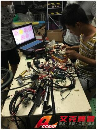 圖1位隊員在焊好電路板之后,利用萬用表檢查焊點質量。福祿克萬用表示數準確,精度高,在測短接時,可以高效地幫助我們排查電路中的問題,迅速排除故障,保障賽車的正常工作,減少消耗在故障排除上的時間。