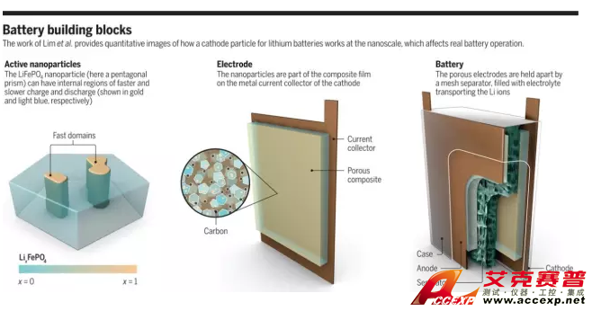 利用高分辨X射線吸收光譜,原位追蹤研究了LiFePO4正極材料中單個(gè)納米顆粒在充放電過程中的行為。發(fā)現(xiàn),當(dāng)循環(huán)速率較快時(shí),形成固溶體。當(dāng)速率較慢時(shí),顆粒內(nèi)部發(fā)生納米尺度的相分離,最終縮短電池的壽命。