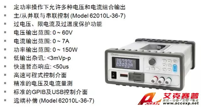 Chroma 62000L系列可程控直流電源供應(yīng)器具傳統(tǒng)Linear穩(wěn)壓器之輸出低雜訊、高速暫態(tài)響應(yīng)特性,同時具備Switching穩(wěn)壓器的輕型化、小體積及低成本等特性,提供許多獨(dú)特功能供自動化測試系統(tǒng)整合、車用電子MCU/ECU測試、半導(dǎo)體驅(qū)動電源及無線通信電源使用,是一高性價比的可程控直流電源供應(yīng)器,設(shè)計(jì)為滿足有嚴(yán)格要求的新一代電力電子應(yīng)用。