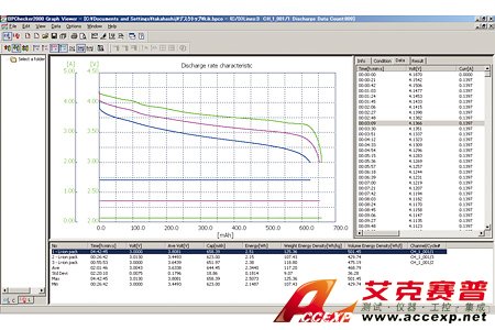 圖示出了充電曲線的重疊圖(放電、充電+放電)。還可以計算平均值、標準偏差、最大或最小值,以及數(shù)據(jù)分析。