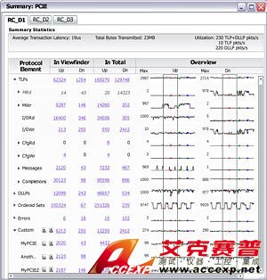 概況摘要窗口 (Summary Profile Window) 可確定系統狀況并識別感興趣的模式,如誤碼、TLP、DLLP、命令集等。