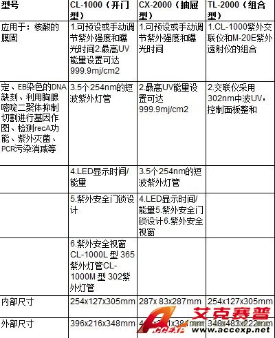 美國(guó)CL-1000/CX-2000/TL-2000紫外交聯(lián)儀主要應(yīng)用于核酸的膜固定、EB染色的DNA缺刻、利用胸腺嘧啶二聚體抑制切割進(jìn)行基因作圖、檢測(cè)recA功能、紫外滅菌、PCR污染消減等。