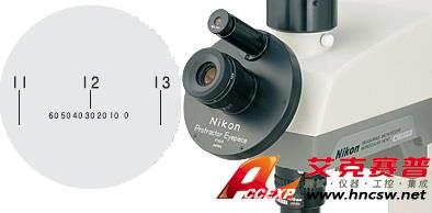 數(shù)字式測(cè)角目鏡(適用于除U?LU?LMU以外的全部機(jī)種)在視場(chǎng)中旋轉(zhuǎn)十字線來測(cè)量角度。顯示單位:1′、10′