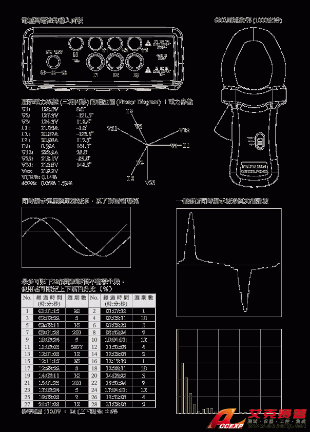 AC(交流)電流的諧波分析(1~99階)3007超大電流軟性鉤部 | |||||