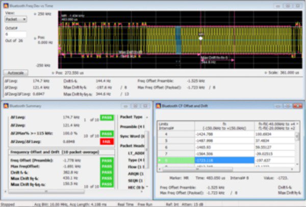 增加了兩個新選項,幫助您在時域、頻域和調(diào)制域中進行基于 Bluetooth SIG 標(biāo)準(zhǔn)的發(fā)射機 RF 測量。選件 SV27 支持 RF 規(guī)定的基本速率和低能耗發(fā)射機測量。TS.4.2.0?和 RF-PHY.TS.4.2.0?測試規(guī)范它還解調(diào)并提供增強數(shù)據(jù)速率數(shù)據(jù)包的符號信息。選件 SV31 支持藍牙 5?標(biāo)準(zhǔn)(LE 1M、LE 2M、已編碼 LE)和核心規(guī)范中規(guī)定的測量。這兩個選件也解碼所傳輸?shù)奈锢韺訑?shù)據(jù)并使用顏色編碼符號表中的數(shù)據(jù)包字段以便清晰標(biāo)識。