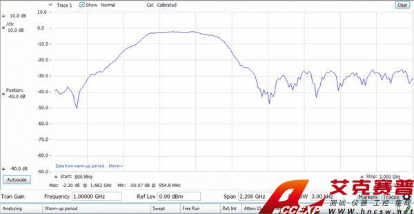 跟蹤發(fā)生器 (RSA600上選項(xiàng) 04) 通過(guò) SignalVu-PC 控制。下面顯示了800 MHz ~ 3?GHz的帶通濾波器。選項(xiàng)SV60增加了回路損耗、線損耗和遠(yuǎn)程故障。
