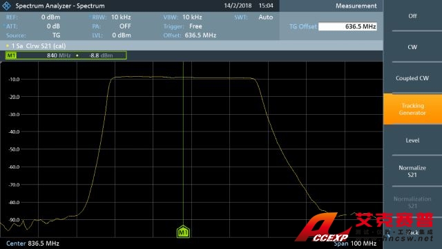 射頻工程通常需要測試無源或有源射頻電路;這些電路本身不會產生射頻信號,例如放大器、濾波器或射頻電纜。僅使用頻譜分析儀不足以進行此類測試,還需要借助信號發生器。R&S FPC1500 具備跟蹤源功能,可執行傳輸測量,例如射頻濾波器以及一般頻率響應測量。