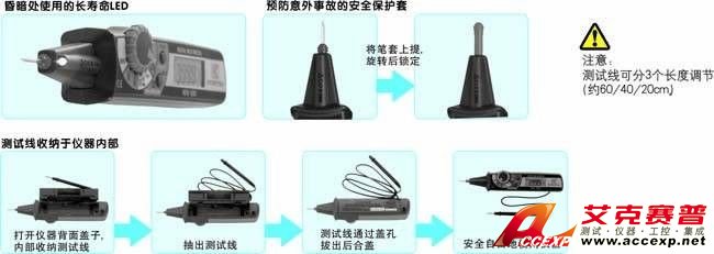 內置式試電筆功能,無需攜帶其他工具就能檢測現場 交直流電壓的存在位置。 ![]() ![]() ![]() ![]() (此時,量程600V/分辨率0.01基礎準確度1%±5) ![]() ![]() ![]() 從基本電壓測試到排察靈敏電子電路故障的各種應用 或測試需求。 ![]() ![]() ![]() ![]() ![]() |