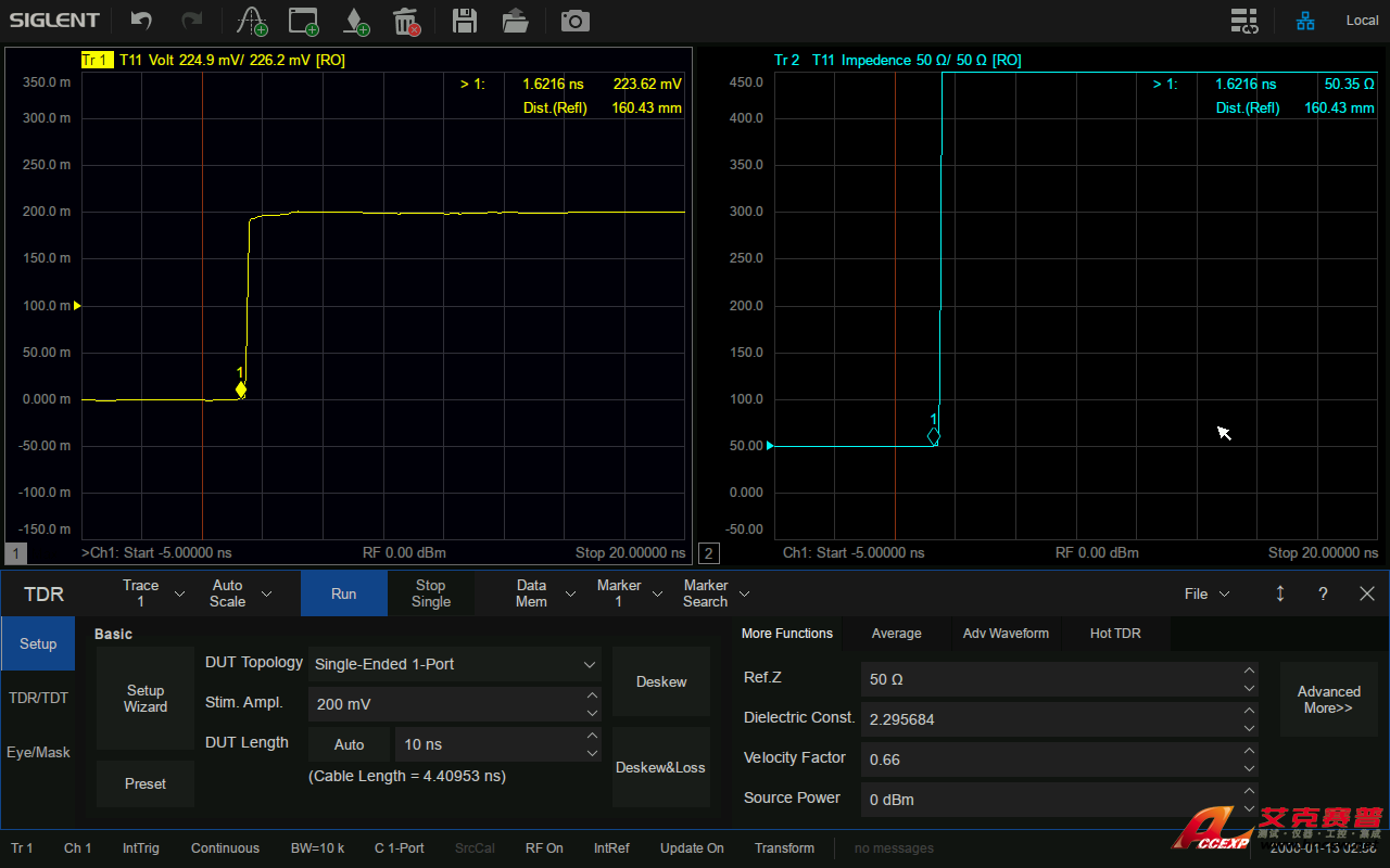 鼎陽SIGLENT SNA5084X矢量網絡分析儀支持TDR時域反射計測量功能,可在時域對傳輸線的特征阻抗,時延等參數進行分析。