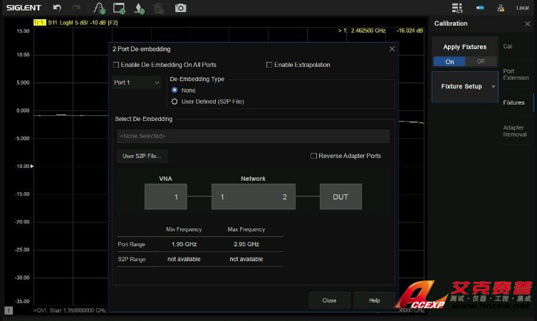 在微波射頻領域,如何有效消除有害的測試夾具效應是一大挑戰。比如在對SMD器件進行測試時需要特定的測試夾具實現測試儀器測試端與器件輸入端的轉接,導致測試結果中包含了測試夾具的特性。目前鼎陽SIGLENT SNA5084X矢量網絡分析儀提供的去除測試夾具影響的方法主要有:端口延伸,端口匹配,端口阻抗轉換,去嵌入,適配器移除等。