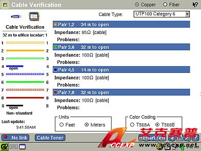 FLUKE networks EtherScope II 網絡分析儀驗證 UTP 和 STP 銅纜特性:長度、阻抗、短路、開路和錯線等。使用辦公室 ID 以識別遠程工作出口。