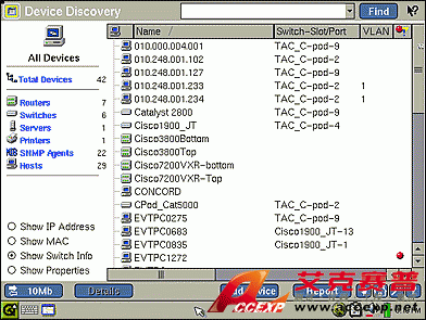 如果您在使用管理 VLAN,在發現過程中通常找不到交換機。然而,通過 EtherScope,您可簡單增加交換機以作為用戶定義設備,從而獲得關于交換網絡的完整圖像。EtherScope 可為每個發現的設備自動確定其最近交換機、接口和 VLAN,簡化了問題解決和配置改變跟蹤。