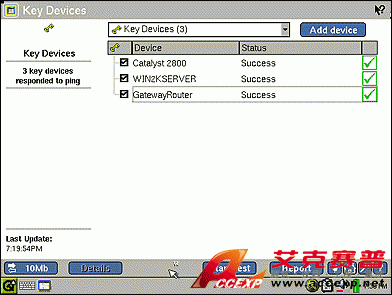 FLUKE networks EtherScope II 網絡分析儀通過 Ping 關鍵設備,檢驗到用戶定義設備的連接情況:路由器、服務器 或交換機。