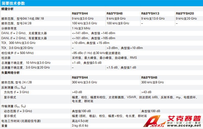 以下是艾克賽普為您介紹羅德與施瓦茨 R&S FSH4 手持式頻譜分析儀的簡要技術參數,如有相關問題,請聯系長沙艾克賽普儀器儀表公司