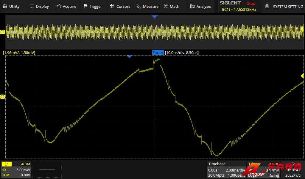 SDS2354X HD,12-bit高分辨率可清楚地觀察到電源軌小信號細節。0.5%的直流增益精度,給小信號測量帶來前所未有的信心。標配2M點FFT功能,還可實現在頻域分析信號,以定位噪聲來源。