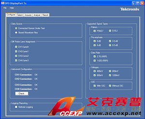 Display端口 一致性測試解決方案 (選項DSPT) -使用P7300SMA 系列探頭和Display端口 軟件,通過四線同時測試,支持Display端口 一致性測試標準(CTS)源端測試。它提供了詳細的測試報告,包括 波形圖、測試通過/ 失敗結果及余量分析。