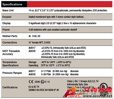 M202 Precision Absolute Manometer AdvantagesApprovals