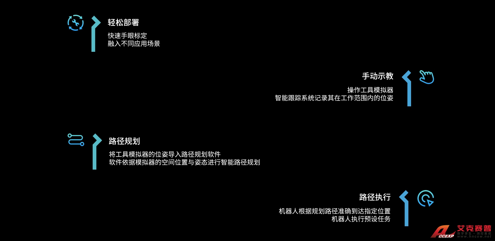 無論是專業(yè)工程師還是普通的技術(shù)人員,無需直接操作實際機器人,只需操作工具模擬器模擬實際工具外形,通過智能跟蹤系統(tǒng)獲取TCP位置和姿態(tài),即可進行機器人路徑模擬,有效降低操作門檻。