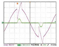 當待測物有較大的輸出阻抗時,如發電機,若無自動頻寬調整功能時,電流波形會較不穩定,如圖8所示。大部分的情況下,負載電流會產生震蕩并影響測試結果的準確性。