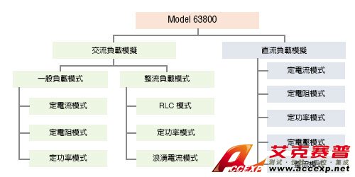 63800系列交/直流電子負載,主要是提供交流及直流負載模擬使用。下列樹狀圖為可提供的各種負載模式。