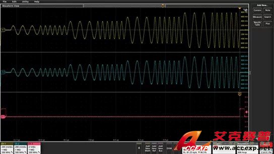 大多數應用需要一條或兩條輸出通道,但某些應用則要求更多的通道。例如,為了仿真三相電信號,工程師通常需要同步三臺 2 通道發生器,每個相位上的電壓和電流各一臺。以前這會耗費很長時間,因為要求在不同 AFG 儀器之間連接許多電纜,還需要在所有儀器上一層層改變菜單。