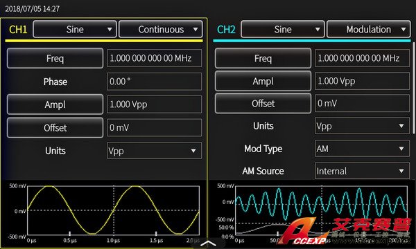 在基本模式下,AFG31000 生成傳統(tǒng)函數(shù)和任意波形。觸摸屏和前面板控制功能可以簡便地進行設置。