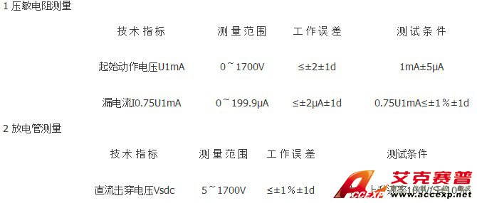 適用于氧化鋅避雷器(壓敏電阻),金屬陶瓷二、三電極放電管、真空避雷管等過壓防護元件直流參數(shù)的測量。